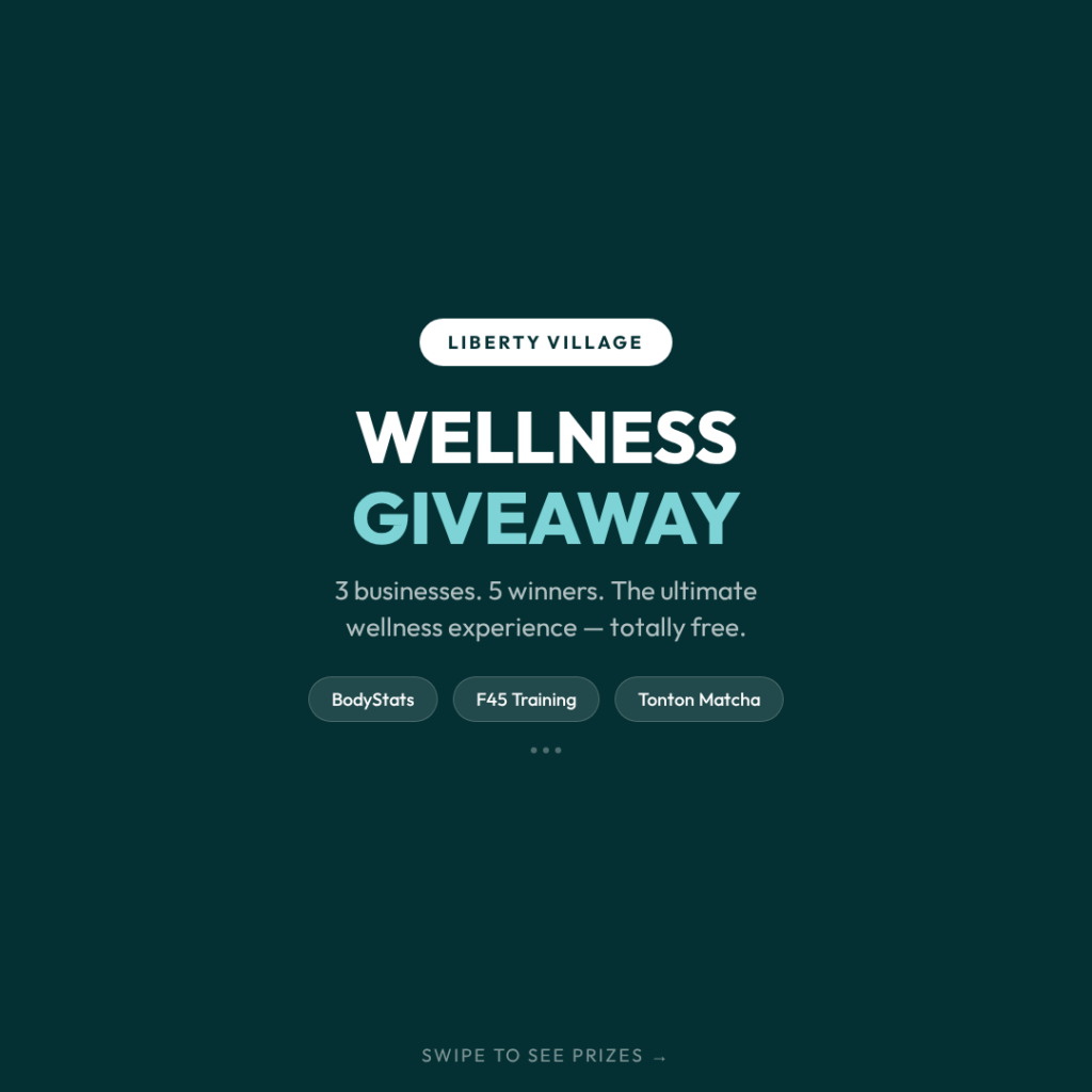 Liberty Village has an incredible wellness community, and this giveaway is our way of celebrating it. BodyStats, F45, and Tonton Matcha each bring something different to the table — precision health data, high-intensity functional training, and mindful recovery. Together, they represent a complete approach to wellness that we think more people in Toronto should experience.